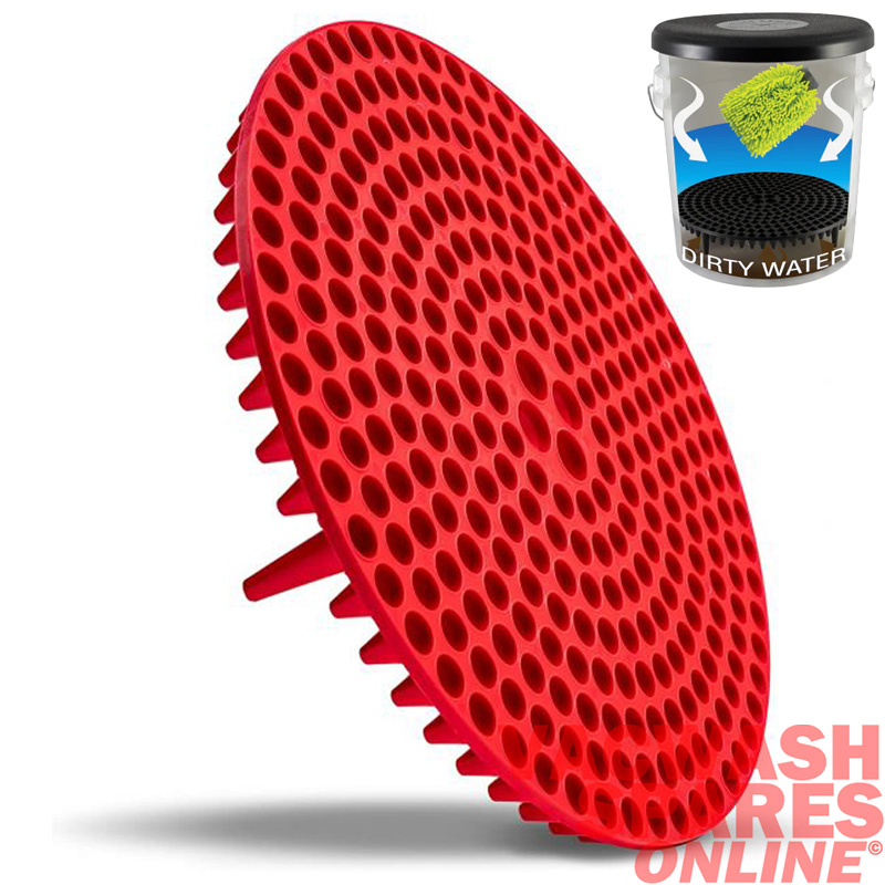 The Cyclone Dirt Trap bucket insert sits at the bottom of your bucket while you wash filtering water non-stop. It's the filter that never stops. The cyclone Dirt Trap help eliminates wash swirls and scratches with Cyclone Dirt-Trap Filtration Technology. The round wash screen separates abrasive dirt and silt from clean and soapy wash water with scores of cyclonic dirt funnels. Separating dirt from clean and soapy water keeps abrasive debris off the wash mitt, and therefore off the paintwork for a scratch-less car wash. Traditional wash baffles use large vertical screens or disposable mesh filters in an attempt to separate dirt from water, which always ends up cloudy with loose contamination and abrasive filth. These designs are defeated by the mere act of dunking the mitt into the bucket, which pushes and pulls water and dirt straight through the vertical openings of the poorly-designed screens. The cyclone funnels of the Dirt Trap separate dirt through centripetal force and push it through tiny holes underneath the wash screen. The dirt remains trapped underneath the funnels and cannot easily flow back up through the tips once the mitt is pulled out from the water. The one way Cyclone Filtration system is a passive filter that never needs replacing and does not rely on moving parts, no disposable filters, and requires no maintenance or energy to set up, use, or store.