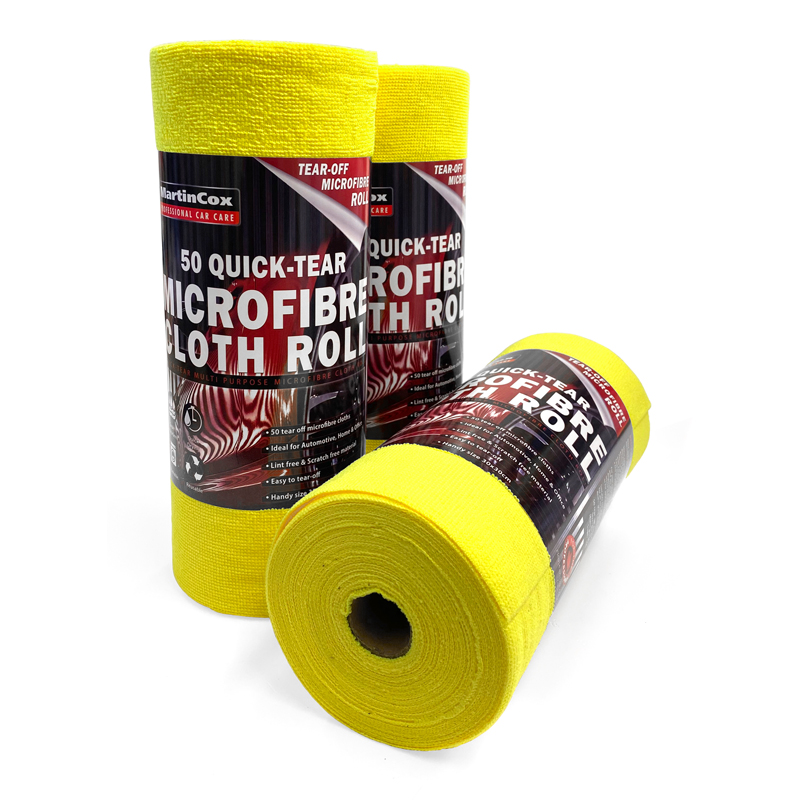 This Quick-Tear Microfibre roll of 50 economical 30x30cm microfibre cleaning and wiping cloths on a convenient roll to tear off.